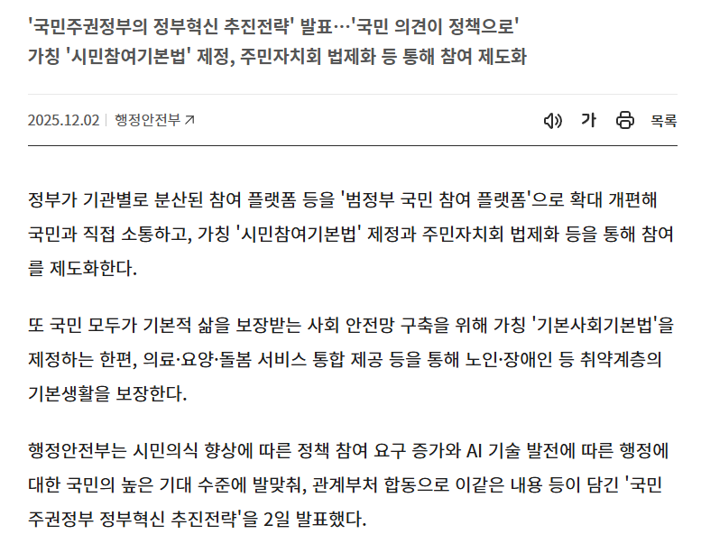 즉, 앞으로는 “국민 참여”가 선택이 아니라 정부 정책의 기본 프로세스가 되는 것입니다.